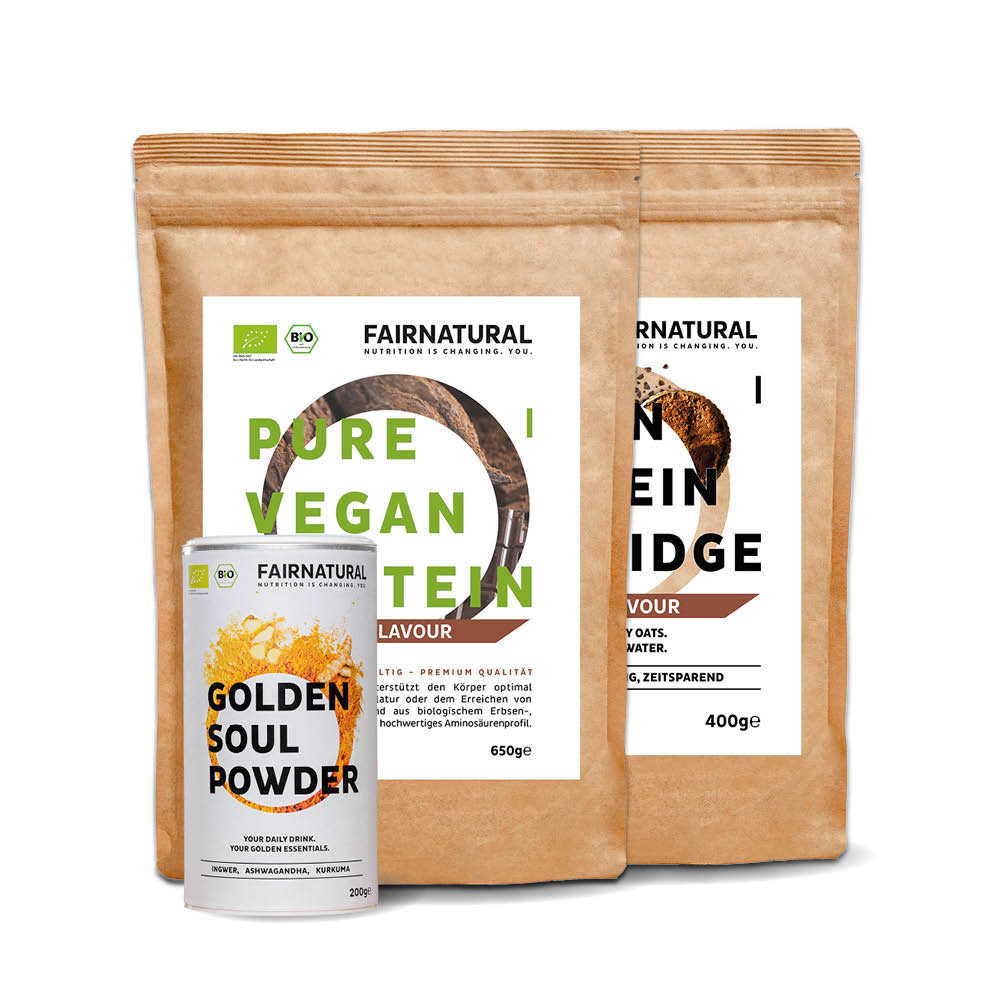 Wie bei einer klassischen goldenen Milch ist auch bei unserem Golden Soul Powder die Wirkung auf die drei Grundzutaten Kurkuma, Ingwer und Pfefferkörner zurückzuführen. Zusätzlich haben wir unser Bio Golden Soul Powder noch mit angenehm süßlichem Yakon Pulver, einer Note Zimt und vielen weiteren gesunden Superfoods wie Ashwagandha und Reishi Pilz verfeinert. Dadurch entsteht ein einzigartiger Geschmack, der die Wirkung einer klassischen Goldenen Milch in den Schatten stellt.